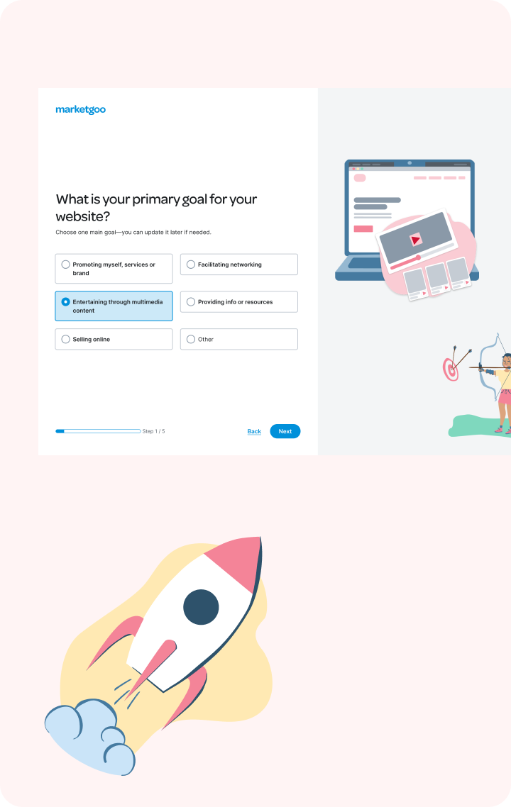 The challenge was to design an onboarding flow that guided users through their first steps without overwhelming them with technical concepts. We had to balance providing enough information to help users make informed decisions to get the product ready, while keeping the experience simple, approachable, and efficient.